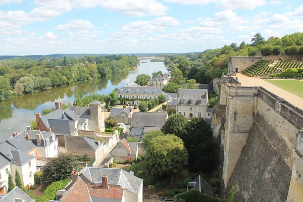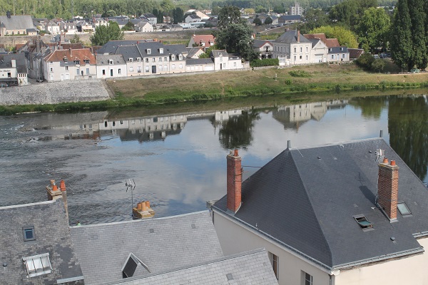 El castillo se encuentra a buen recaudo en la parte más alta de la población y defendida por una muralla maciza de unos veinte metros de altura que lo envuelve en un cerco perfecto junto a sus jardines. El castillo, con planta en forma de L, mira al río Loire desde su imponente altura y a las casas de piedra blanca y tejado de pizarra, muchas de ellas nobles, que conformaron la población que creció a su alrededor.