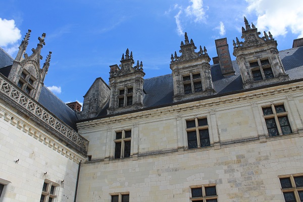 El castillo Real de Amboise mantiene algunos elementos góticos, arcos ojivales, junto a una mayoría claramente renacentistas. Tejados a dos aguas de pizarra, y el cónico que corona una torre de defensa, contrastan con el blanco de la piedra, una paleta bicolor que también se extiende por todo el pueblo conformando un conjunto armónico.