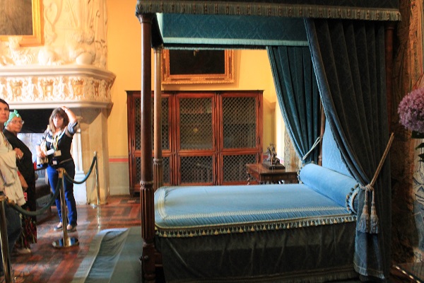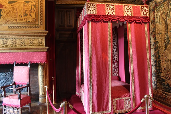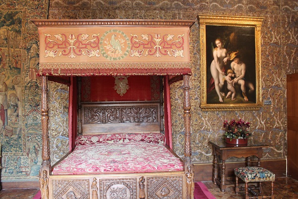 El aposento de Catalina de Medicis, una de las mujeres más influyentes de la época, madre de dos reinas, aparece recubierto con exquisitos tapices flamencos bajo La educación del amor del pintor Le Corrége; la cama con baldaquino es grande y majestuosa y se halla elevada sobre una plataforma cubierta con alfombra rosada.