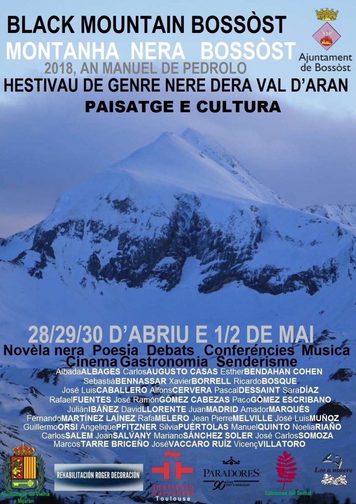 La cultura se echa al monte. Por segundo año consecutivo la población aranesa de Bossòst, a orillas del río Garona, acoge un festival de género negro animada por el éxito de la primera edición, pero este año el programa es mucho más ambicioso, los autores presentes se triplican, los días se duplican acercándose a una semana (28/29/30 de abril y 1/2 de mayo) y las actividades (debates, conferencias, sesiones de jazz, proyecciones de cine, senderismo, gastronomía, fallo de premios literarios…) no sólo tendrán lugar en Bossòst sino también en Vielha, la capital de ese territorio pirenaico conocido por sus pistas de esquí y sus espectaculares paisajes, y Toulouse, Francia.