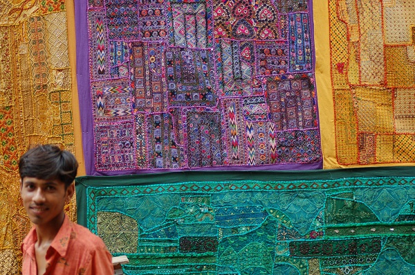 Seguí visitando la ciudad, haciendo fotos a sus gentes y a sus piedras; me detuve en un restaurante a comer una exquisita y especiada comida hindú, que sentó bien a mi estómago, y estuve callejeando hasta bien entrada la noche, fascinado por la belleza de esa ciudad que literalmente me embrujaba. Regresé, entonces, a la tienda de mi amigo Jacky Khatri, porque era evidente que, a pesar de nuestras diferencias culturales e idiomáticas, y generacionales (él podría muy bien ser mi hijo), se había establecido un importante vínculo entre ambos, que éramos amigos aunque, quizá, no fuéramos a vernos nunca más. Me invitó a otra taza de té y allí estuve con él, hablando de la India, de sus gentes, de la extraordinaria artesanía, de la belleza de sus monumentos, de su familia y de la mía, sintiéndome a gusto, con las piernas cruzadas y recostado contra unos mullidos cojines. Nos comunicábamos, sobre todo, con gestos, miradas y sonrisas, y nos entendíamos porque había voluntad de hacerlo. Un español y un hindú que habían empatizado a primera vista, algo que sólo era posible en ese país.