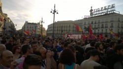 Desde el pasado lunes, la Puerta del Sol se ha encontrado abarrotada de ciudadanos en las diversas movilizaciones portando banderas republicanas y pancartas que exigen el derecho democrático de poder decidir la continuidad de la monarquía y que la votación del PP y el PSOE en relación con la Ley Orgánica que regula la sucesión del Rey Juan Carlos en su hijo, el príncipe Felipe, sea validada por los ciudadanos.