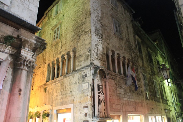 Franqueo la muralla arrastrando mi maleta, paso por delante de la estatua de Marko Marulik, poeta medieval croata considerado como el padre de la literatura de ese país, en piedra negra sobre pedestal blanco, y veo las ventanas de mi pensión, en una céntrica calle, pero no acierto con la entrada. Finalmente alguien se apiada de mí y me acompaña a un callejón lateral, sin salida, en donde aparece la puerta de Pansion Kastel, tras subir una escalinata. Más de un huésped habrá dormido al raso al no encontrarla