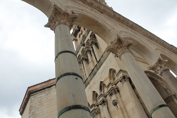 La síntesis de la ciudad medieval con la antigua alcanza su cénit en la catedral románica que crece respetando arcos, columnas y dinteles de la época de Diocleciano que hay a su alrededor sin ni siquiera tocarlos. Acostumbrado a que las catedrales góticas trituren a sus antecesoras románicas, y a éstas se les añada el estilo barroco o neoclásico sacrificando sin problemas naves o pórticos, sorprende el respeto arquitectónico de Split, sobre todo en su diminuta catedral que no puede crecer, precisamente, por estar sitiada por elementos romanos que la constriñen.