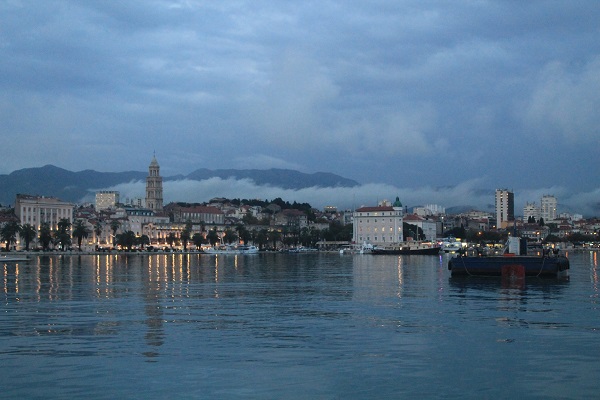 Desde ese punto, alejado de la ciudad, tengo una magnífica panorámica. El cielo está azul plomizo, por las nubes que lo cubren, y pinta el mar del mismo color; una nube baja y alargada amenaza con seccionar, en su avance, la torre de la catedral. Con esa visión marcharé de Split, la ciudad que toda ella es un museo a cielo abierto.
