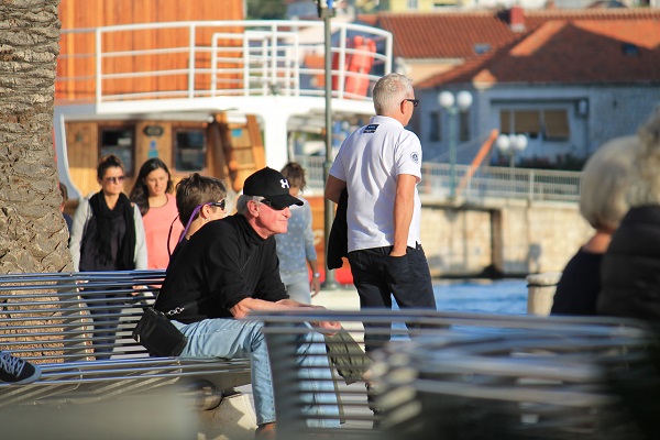 Continúo por el paseo marítimo, que es también muelle en donde han amarado enormes y lujosos veleros de tres palos, y tiene éste el aire distinguido de la Croisette. Admiro, a mi derecha, un palacete neogótico blanco que debe ser la sede de algún organismo por su empaque. En la boca del puerto, defendiéndolo de las incursiones de los piratas, se yergue una fortaleza que ahora es mirador de la ciudad. Entrar cuesta 20 konecs que pago a un aburrido muchacho sentado tras una mesa plegable en el patio de armas del castillo. Una empinada escalera me sube hasta el camino de ronda que circunvala la fortaleza militar, y una más que empinada escalera de barco al torreón hueco, en donde anidan grupos de palomas que revolotean a mi paso, desde el que las vistas sobre la ciudad, con los campanarios de sus tres iglesias sobresaliendo sobre los tejados de teja de las casas, el canal marítimo y el mar son envidiables. Un ferry de la compañía Jadrolinija, con una única pasajera a bordo que va sentada en un banco de cubierta y recibe los rayos del sol, desatraca y se hace a la mar hacia alguna de las islitas que salpican el Adriático. Un velero entra por la dársena y atraca majestuoso entre otras embarcaciones.