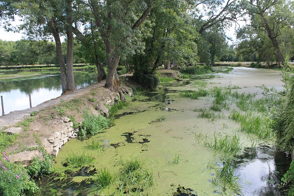 Cuando salgo de la breve visita, Pierre-André y su encantadora esposa Bénédicte Michaud ya no cortan rosas sino que bogan en un bote por las aguas verdosas, y con algún que otro nenúfar, del Indre que han aprisionado en su posesión. Él rema y ella hunde sus manos en el agua en un intento, imposible, de limpiar las aguas, de las que arranca algunos hierbajos que sobresalen del agua. Cuando pasan ambos por delante de la tumbona que ocupo, tras la visita, en la que me relajo, leo y contemplo ese paisaje de otra época, con un río punteado por la nostalgia del sauce llorón en su orilla, me sonríen y agitan las manos. Son endemoniadamente felices, me digo, los visitantes son su maná diario y dan gracias cada día, a alguno de los crucifijos, de su fortuna.
