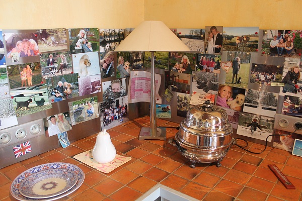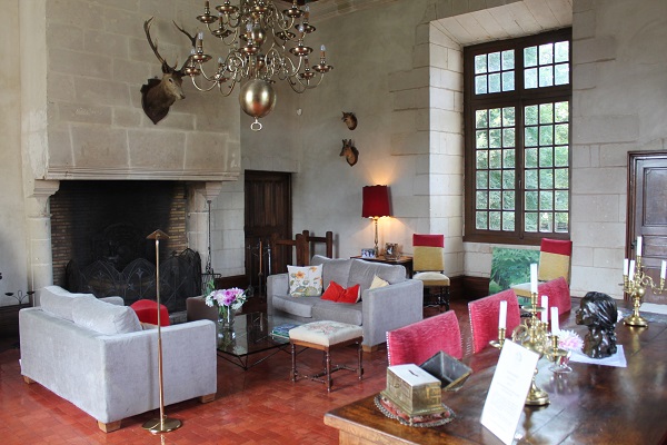 En la sala de caza, adornada con cabezas de ciervos y otros astados, con una gran chimenea y paredes desnudas, hay una gran mesa de madera, muy austera, que sirve para las comidas, y algunos butacones para que los cazadores compartan sus emociones tras una sesión cinegética. El austero comedor tiene tres ventanales por donde entra la luz y una chimenea de troncos para caldear el ambiente en invierno. Imagino a la rubia familia comiendo ciervo que debe cazar Pierre-André, aunque no he visto escopetas por la casa.
