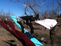 Ropa que cubre tu cuerpo y tu cama, tu mesa y tus humedades. Ropa limpia y sucia. Ropa que se seca de forma natural, con este sol y estos vientos que barren el cielo y abrillantan las montañas. Nada que ver con la ropa apelmazada y encogida por inmundas secadoras eléctricas, consumidoras de una energía que hoy nos venden como oro las élites extractivas, ésas que en pos de la competitividad, están dejando a la clase media en cueros. Ésas que no dudan en repetir a diestro y siniestro que los salarios han de bajar aún más mientras se parapetan en sueldos multimillonarios y blindados. Ésas que tienen cogidas la sartén por el mango y a los gobernantes por los huevos.