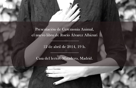 El próximo sábado 12 a las 19 horas la Casa del Lector en el ya famoso Matadero de Madrid, abre sus puertas para asistir a la presentación del Ceremonia Animal, el tercer libro libro de poemas de la joven promesa de las letras Rocio Álvarez Albizuri.