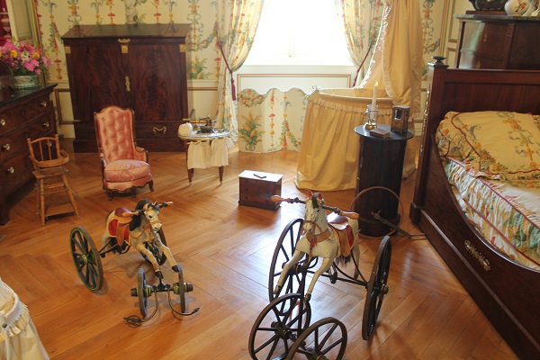 El visitante puede echar un vistazo a los apartamentos privados, decorados por los vizcondes de Sigalas, padres del actual dueño. Las cámaras cambian de color según su uso. En La Amarilla, se presentan en sociedad los nacimientos (cama con cortinas; doble alfombra en el suelo; vestidor, chifonier, escritorio y cuna de balancín); la Cámara Azul pertenece a la señorita soltera; la Roja parece pecaminosa; la Verde es un pequeño comedor privado, vecino a una cocina, en el que se ha dispuesto vajilla de porcelana sobre el mantel blanco que cubre la mesa redonda, presidido por una cabeza de ciervo de cristal. Hay una sala de caballeros, con mapamundi, frascos de alcohol, vacíos, y ceniceros, para que los varones se retiren a hablar de sus asuntos mientras las damas hacen lo propio. La de los infantes es alegre, luminosa, y alberga, en una esquina, una cuna con cortinaje, y en el suelo aparecen esparcidos juguetes de niño bien: caballitos con ruedas. Hay cuadros, marcos dorados, objetos de decoración, cómodas, cortinas, todo lo que se le puede exigir a una casa elegante como Cheverney. Imagino a Milú levantando la pata y orinándose sobre una alfombra. O al capitán Haddock, tras una de sus formidables borracheras, lanzar una vomitona sobre el cortinaje de cretona.