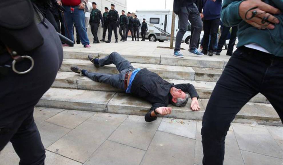 Cuando, en una jornada terrible para la democracia y para Catalunya, en la que dos políticos ineptos han actuado como hacen todos ellos, declarar la guerra pero que se maten sus súbditos (una guerra desigual), uno empieza a compartir videos de las escalofriantes escenas de violencia policial impropias de una policía democrática (parecidas, por cierto, a los de los mossos en la represión del 15 M a las órdenes de Felip Puig, hay que ser ecuánime), resulta que se encuentra que en el resto de España esas imágenes (salvo en la Sexta, vituperada por los independentistas y que está haciendo un enorme trabajo de difusión) te hablan de lo que subraya La Razón de Francisco Marhuenda, que ha habido violencia contra la Policía Nacional y la Guardia Civil, que los cuerpos policiales del estado fueron provocados. Y sí, es cierto, ha habido violencia contra un policía alcanzado por una silla, forcejeos con policías que saltaban el muro de un colegio electoral y no eran recibidos con aplausos por los atrincherados en él, y alguna pedrada contra coches de la Guardia Civil en una localidad de Tarragona. Pues bien. Mucha gente ha visto eso, y no ha visto cómo la Policía Nacional reventaba a mazazos puertas de escuelas, arrojaba escaleras abajo a mujeres, las arrastraba de los pelos, arrojaba gente encima de unos ciudadanos que auxiliaban a otro que había sufrido un infarto y del que se teme por su vida, dejaba tuerto con una pelota de goma a otro, rompía los cinco dedos de una mano a una chica, sacudía a ancianos, los empujaba y los tiraba al suelo sin la menor consideración, cargaba una y otra vez produciendo esas más de 800 víctimas de la brutalidad policial. O no los han querido ver, claro, y se han centrado en la imagen de ese policía derribado por una silla. La Razón adjetiva una noticia, la que le interesa vender a su público, a los que leen lo que quieren leer, y no lo hace con la otra que podría haberla titulado, por ejemplo, “La brutal carga policial deja en Catalunya más de 800 heridos”.