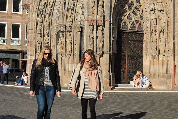 Es la hora de tomarse una jarra de cerveza en la plaza Alberto Durero, y de observar a los turistas y locales que hacen lo mismo que yo o beben vino caliente. La cerveza entra sin acompañamiento y se demora en la mesa. Los alemanes y los foráneos aprovechan para tomar el sol vivificante de este otoño inusualmente cálido mientras en España diluvia.