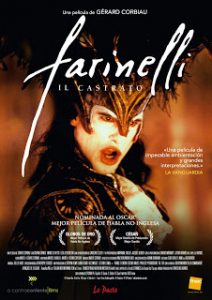 La prohibición eclesiástica que impedía la participación femenina en los cantos litúrgicos, propició el desarrollo de los coros de voces blancas. A la sombra de éstos, la selección de aquellos niños cuyas cualidades sonoras les hacían destacar, procedentes lógicamente en su mayoría de niveles sociales misérrimos. La iglesia excomulgaba a quienes practicaban la emasculación a los niños, para su conversión den «castrati»y los conservatorios respetaban la prohibición. Aunque la primera, repartía a los cantores en sus coros, y los segundos, cribaban los candidatos para eliminar los menos adecuados, practicando un doble juego como empresarios y detractores. Carlo Broschi; conocido como Farinelli (harinero); destacó entre el abanico de los eunucos musicales por sus cualidades humanas, físicas y sonoras. Libre de las malformaciones corporales comunes a los castrados, con una extensión vocal capaz de alcanzar tres octavas y media, poseía una innata resonancia afectiva y lacrimógena, que cautivaba al público. Gerard Corbiau mueve los hilos de su producción entre la prudencia ante la clasificación como producto de culto o elitista. La dificultad de reflejar un periodo histórico de un elevado nivel musical, es resuelta con la calidad y veracidad necesarias para convertirla en una obra fascinante. Junto a las ficticias relaciones de los hermanos Broschi (cantante y compositor, respectivamente) con sus aventuras amorosas compartidas, gracias a que las damas consideraban a Carlo como un método anticonceptivo de la época, aparecen anécdotas reales. Su duelo con un trompetista, acabó con el instrumentista exhausto, mientras el cantante continuaba; sin interrumpirla respiración; elevando y variando las notas, ante un teatro rendido a sus pies.