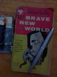 Moby Dick, de H. Melville, uno de mis nuevos dilectos libros, después del Quijote, claro es, responde del modo que sigue: el hombre es un ser andante, marítimo, fuerte, y las cosas del mar son o “peces sueltos” o “peces apropiados” (“loose-fish”, “fast-fish”), y lo que une y desune las cosas es la fuerza, y el objetivo del esforzarse es allegar gloria, honor. Huxley, para forjar su distopía, echa mano precisamente de los contrarios morales de Moby Dick, que llamaremos “disvalores” (no se olvide que Harold Bloom, en un papel de cuyo nombre no puedo acordarme, ha comparado al capitán Ahab con Alonso Quijano).