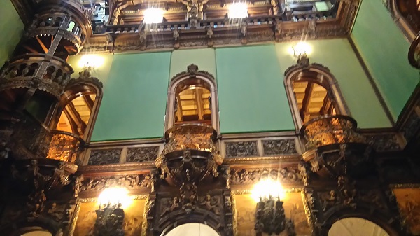 Las tres plantas de esa residencia real, con más de un centenar de habitaciones primorosamente amuebladas a las que no les falta un detalle por mínimo que sea, son el compendio del lujo y la desmesura y mezclan el estilo versallesco con el rococó y el renacentista. La entrada, un salón gigantesco construido con paneles de madera de nogal y decorado con esculturas y relieves, tiene un techo de cristal abatible para que los monarcas pudieran disfrutar del cielo estrellado en las noches de estío. Alfombras, tapices, cuadros de valor incalculable (hay unas cuantas obras de Gustav Klimt, que, además, decoró el salón de música y el teatro del palacio; Ulises juraría que ve un Rubens, que si no es del pintor flamenco ha salido, sin duda, de su taller) cubren las paredes; artesonados historiados de madera cubren sus techos; y cortinas majestuosas enmarcan ventanas y puertas que salen a las siete terrazas que tiene el palacio. Hay habitaciones chinas, españolas, árabes, salas de lectura (los monarcas rumanos eran muy leídos), salas de música, vestidores, salas de desayuno, dormitorios con camas con baldaquino. Hay relojes y bandejas de oro y plata, toda clase de joyas, chimeneas de porcelana, muebles de mármol de Carrara… Incapaz de asimilar tal cúmulo de riqueza, y tanta belleza, Ulises busca el apoyo de una de las paredes para no derrumbarse víctima del síndrome de Stendhal. La recargada decoración del palacio, la elegante y larga escalinata que comunica la planta baja con la primera, las esculturas de seres míticos que aparecen por doquier, le trasladan a Ulises a la exquisitez del rey Luis II de Baviera, el Rey Loco, loco por amar el arte y odiar la guerra. Peles es un pequeño Neuchswastein y ese lujo desorbitado e inasimilable, que los propios habitantes regios del castillo no podrían saborear, esa acumulación de riqueza que ve allí es la enfermedad del capitalismo.
